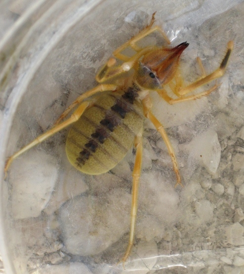 Это фаланга, что-то среднее между пауком и скорпионом. Передвигается очень быстро, один раз пытался её догнать, но она все равно убежала. В том году одна залезла мне на шею, пока я сидел на табуретке, и потом, так же быстро, сленяла. Они не ядовиты, но так как жрут падаль, их укус очень болезнен и чреват заражением.